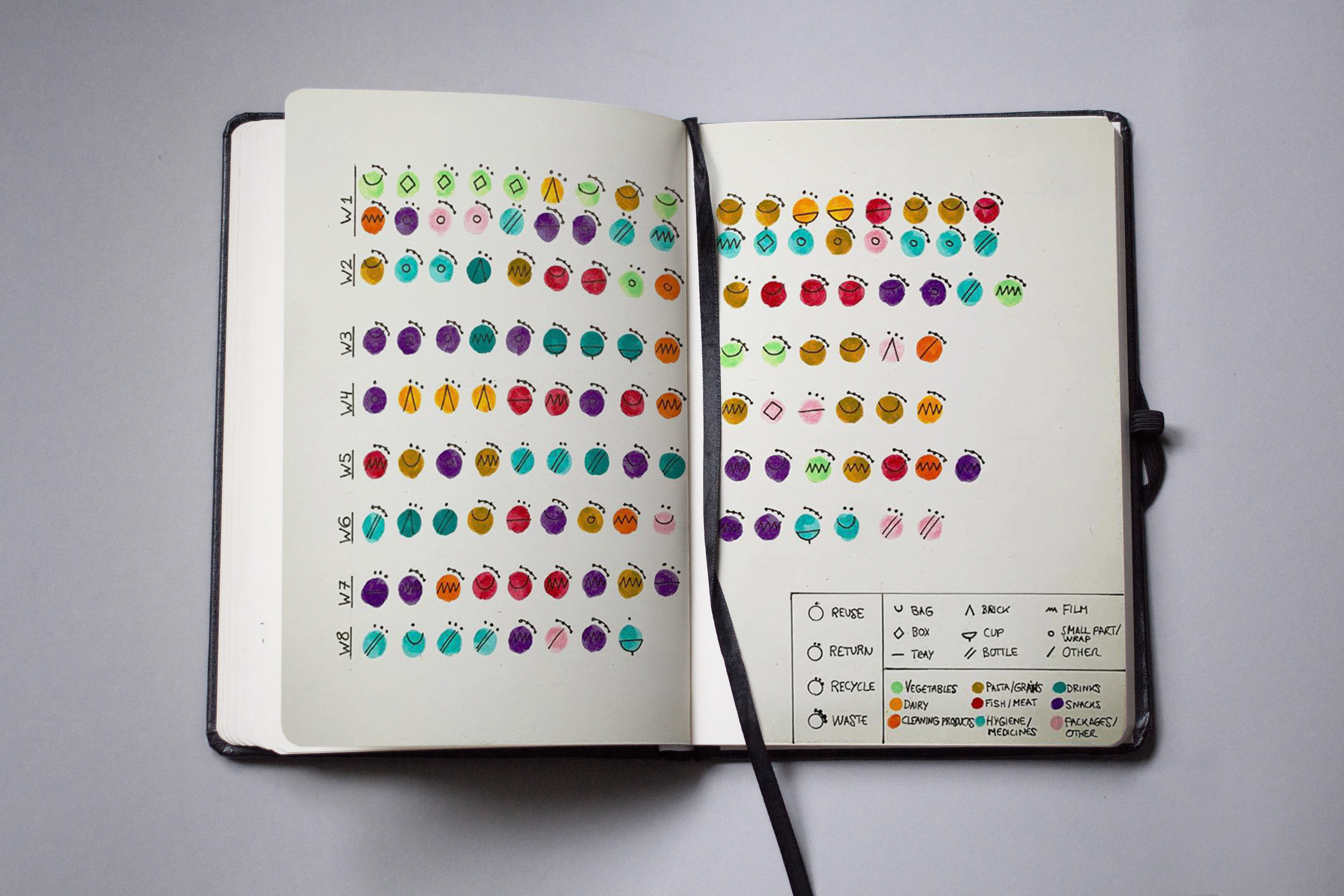 This time I used data journaling to track and change my consumption behavior. This is part of the data I collected during 14 weeks in 2019 when I started reducing my plastic consumption. My record was only 2 plastics in one week. With covid I lost the good habits but I still use way less plastic and packaging in general than at the beginning…Baby steps.