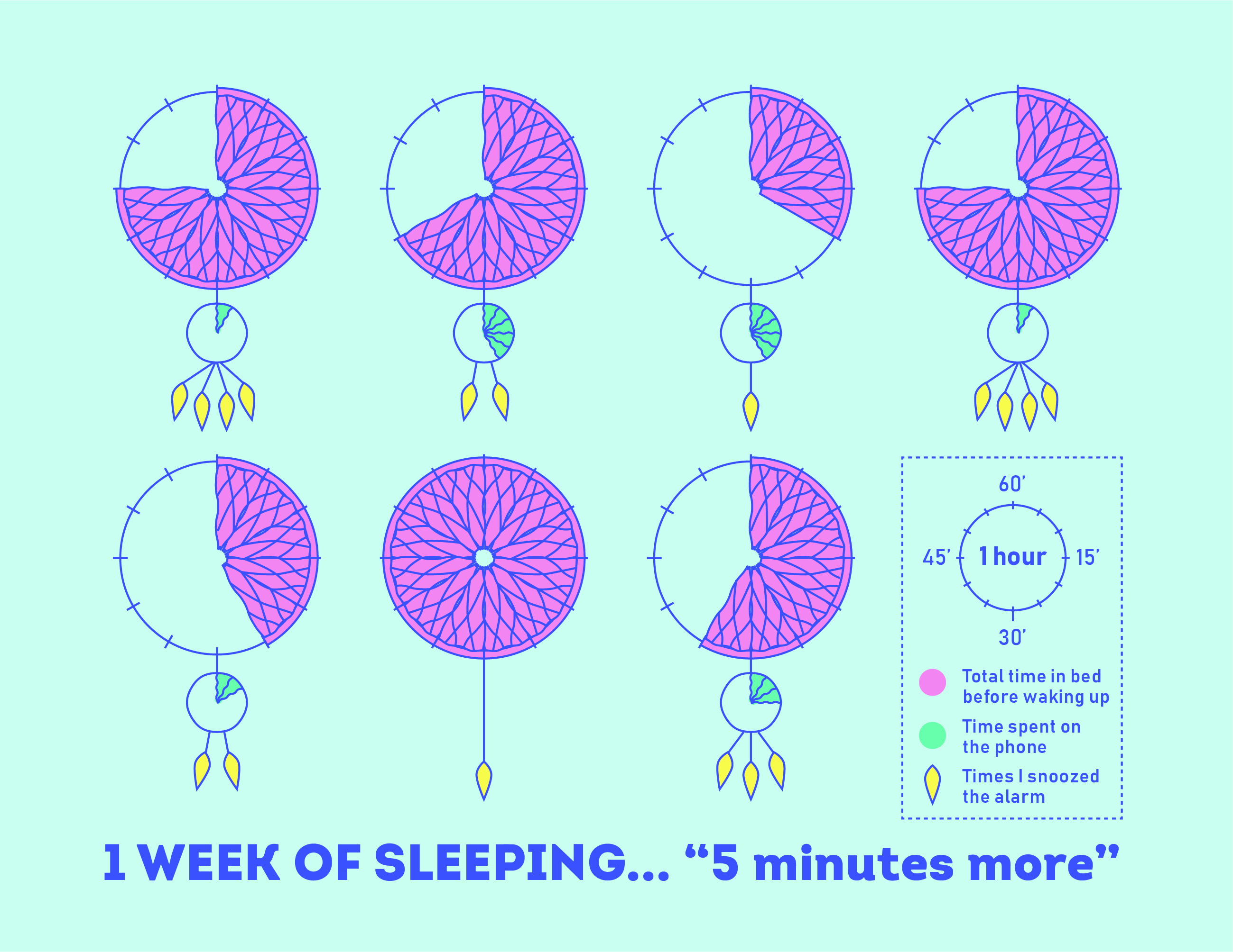 Since for me it’s quite hard to wake up, I tracked the time I waste every morning until I manage to do it. Usually, I snooze the alarm a few times and I also look at my phone for a while